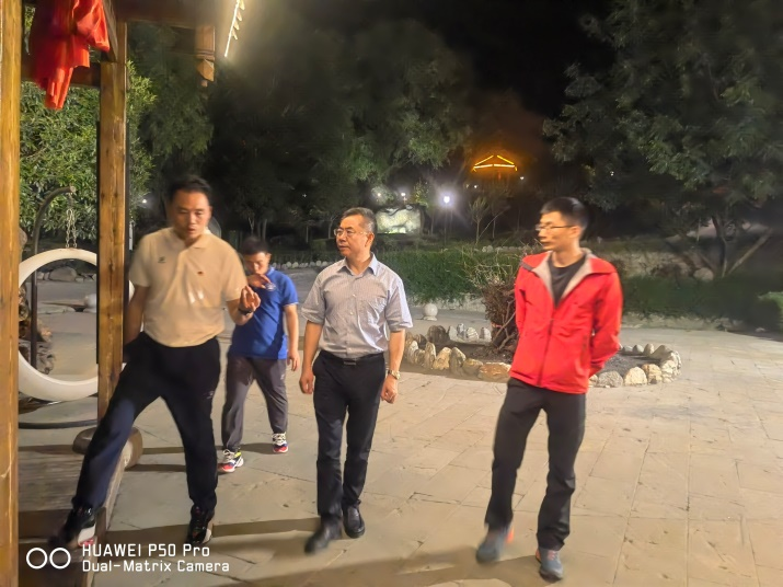 星月皎洁,明河在天。为避免纸上谈兵,高谈阔论,在大禹农庄程琳总经理全程的带领下,我院领导老师不畏辛劳决定实地考察大禹农庄各个场地、场所,为合作项目落地实施提供基本的保障。