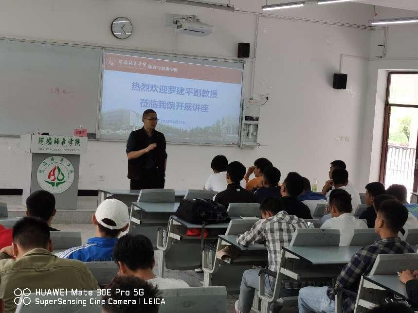 【本网迅】5月20日13:00,四川师范大学罗建平副教授在树人楼C102教室作了题为《体育生的学力储备与未来展望》的专题讲座。体育与健康学院2020级篮球专选班和2019级篮球专选班的80余名同学到场聆听。讲座由体育与健康学院袁鹏宇老师主持。