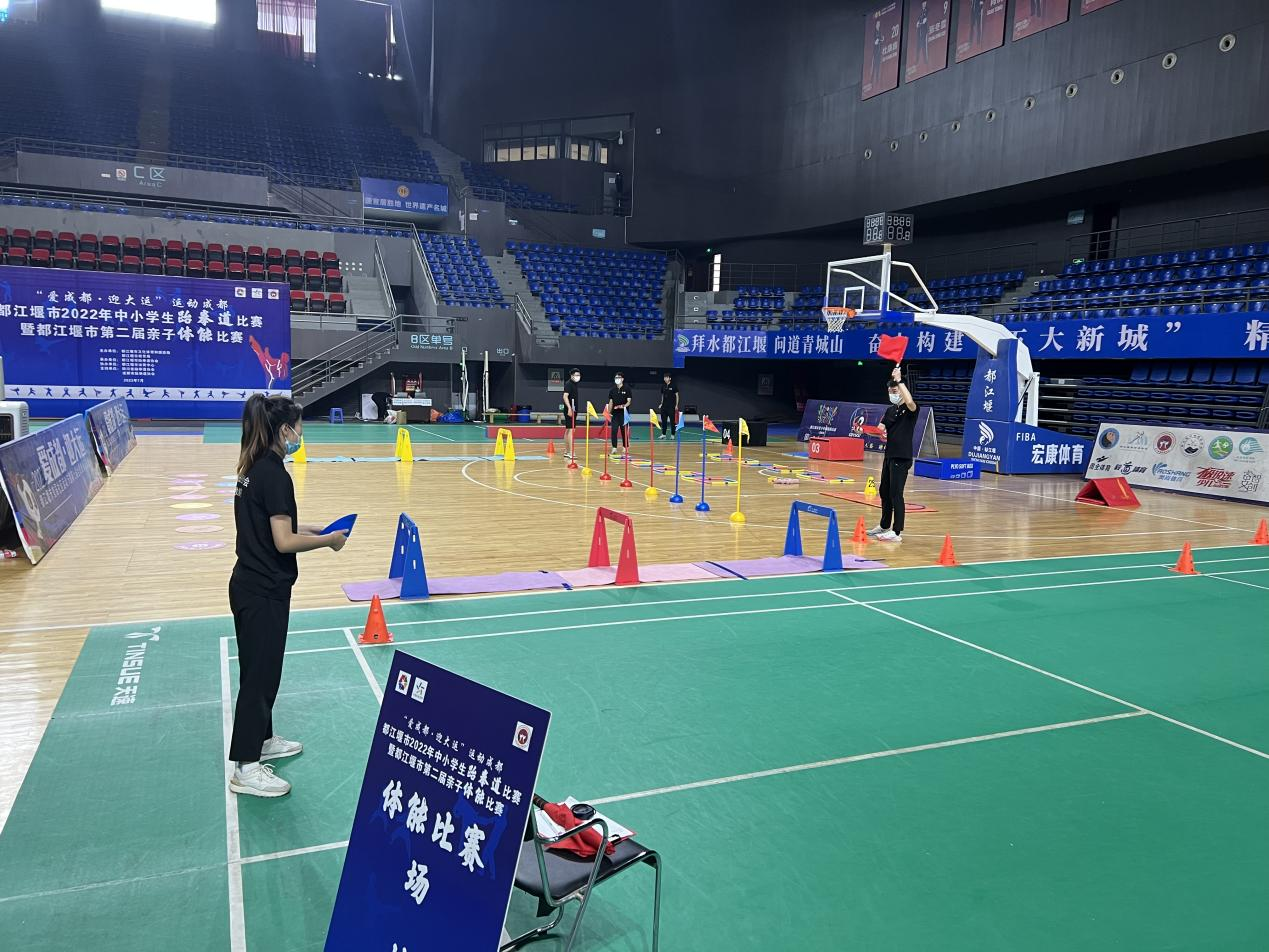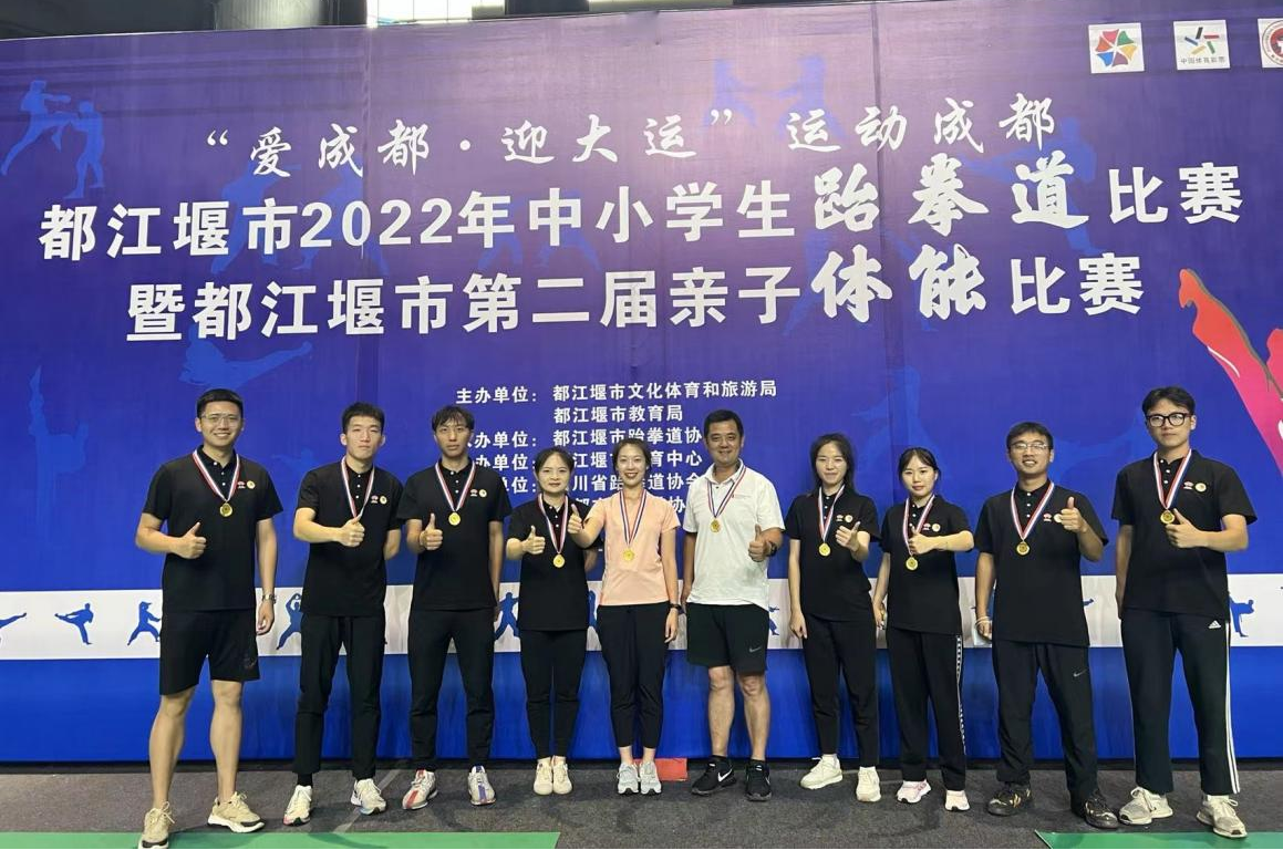 【本网讯】2022年7月2日,由都江堰文化体育和旅游局、都江堰市教育局主办,都江堰市跆拳道协会承办,我校儿童青少年体适能教育创新科研团队、晓斌名师工作室提供技术支持的“爱成都·迎大运”“运动成都.都江堰市2022年中小学生跆拳道比赛暨都江堰市第二届亲子体能比赛”在都江堰市飞龙体育馆成功举办。