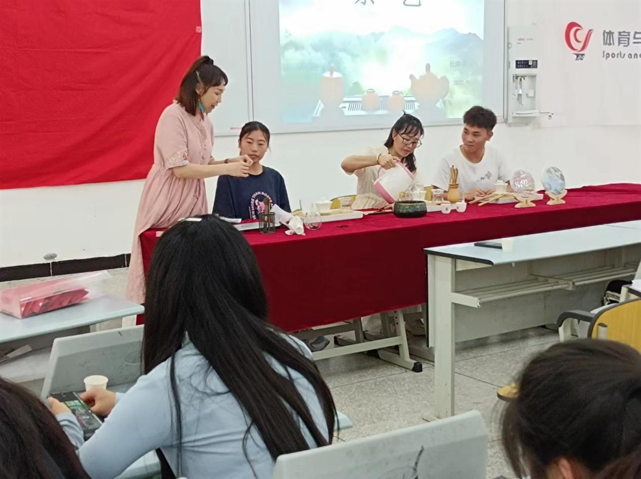 【本网讯】体育与健康学院第二支部于2022年6月13日中午12:30在树人楼C101为我们学生党员和积极分子组织了一场别开生面的茶艺活动,活动由长津湖党小组黄旻玥同志组织主持,支部书记付文灿同志,纪律委员陈豪同志,宣传委员尹方同志,统战委员魏矫同志以及60人党员积极分子参加了本次活动。