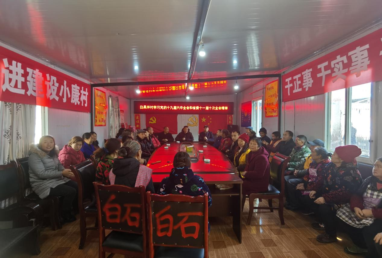 他最后讲到:学习十九届六中全会精神,要把学习所得结合到实际工作中去,希望白果坪村全体党员、干部、群众深入贯彻全会精神,在村党支部的带领下,坚决落实中央关于乡村振兴的总体部署,把白果坪村建设成为产业兴旺、生态宜居、乡风文明、治理有效、生活富裕的现代化新农村。