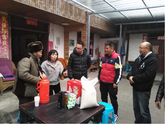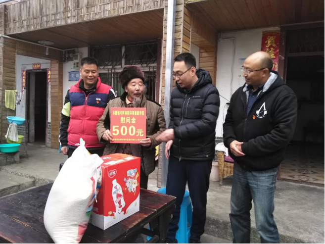 会后,水磨镇党委书记刘志宏、副书记徐才英,体育与健康学院党总支书记陈松、院长龙正印、院工会小组组长罗胜一同到水磨镇大槽头村患病杨国明老人家和刘家沟村孤寡老人骆世群老人家进行了慰问。