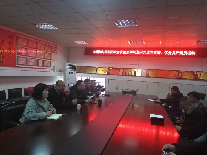 【本网讯】12月12日,阿坝师范学院体育与健康学院党总支与水磨镇机关党支部在水磨镇党委会议室开展“不忘初心、牢记使命”主题教育结对共建活动,表彰在8.20抗洪救灾中表现突出的9名优秀共产党员和6个先进基层党组织,对水磨镇8名家庭困难的党员、干部以及留守老人进行了慰问。