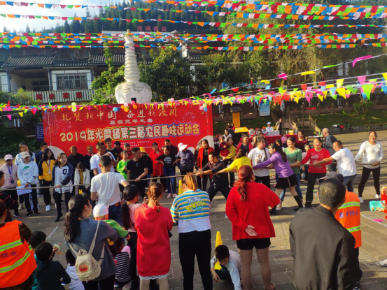 【本网讯】为进一步贯彻落实学校“不忘初心、牢记使命”主题教育的会议精神,体育与健康学院党总支为扎实推进主题教育有效开展,积极支持水磨镇开展羌历年庆祝活动,于2019年10月28日在羌历年来临之际,在水磨镇老街上开展礼赞新中国、奋进新汶川,2019年羌历年趣味运动会。