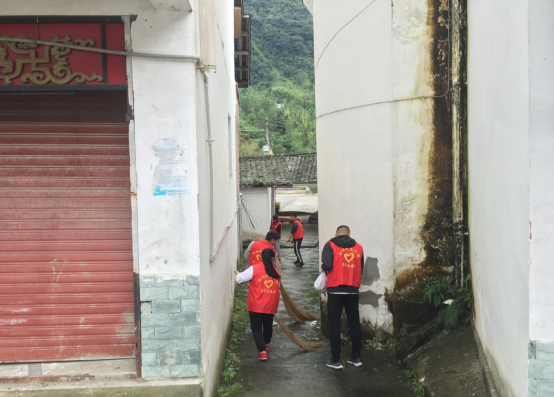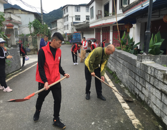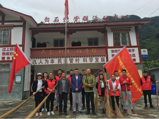 体育与健康学院党总支根据白石村灾后恢复实际情况,于2019年9月20日下午12:40,由学院党总支书记陈松、院长龙正印,带领学院部分党员教师及由10余名学生党员、入党积极分子组成的志愿者服务队伍,到白石村进行灾后清污、共建家园活动。