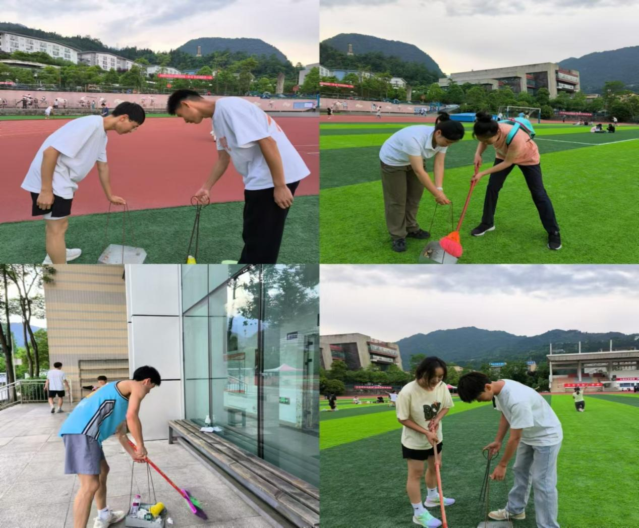【本网讯】为响应绿色校园建设的号召,提升全校师生的环保意识,2024年5月21日体育与健康学院第二党支部入党积极分子在组织委员罗胜老师的带领下,积极投入到保护运动场环境、创建美好校园的活动中,以实际行动展现了新时代青年的责任与担当。